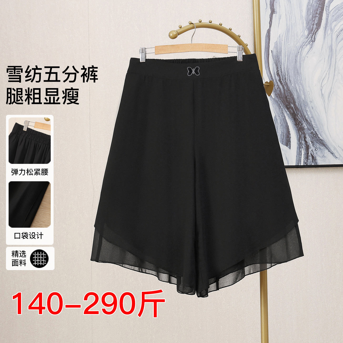 Celana Selutut Sifon Ukuran Besar 260Kg Pakaian Musim Panas Wanita Gemuk Terlihat Langsing Celana Kaki Lebar Celana Wanita Mudah Dipadu Padan Lemak 25620K