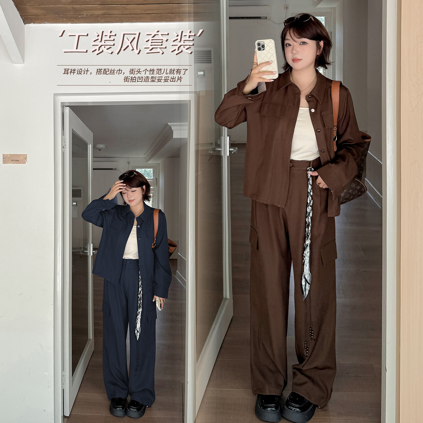 叠穿工装风酷飒休闲套装女2025秋季新款胖mm显瘦两件套323494