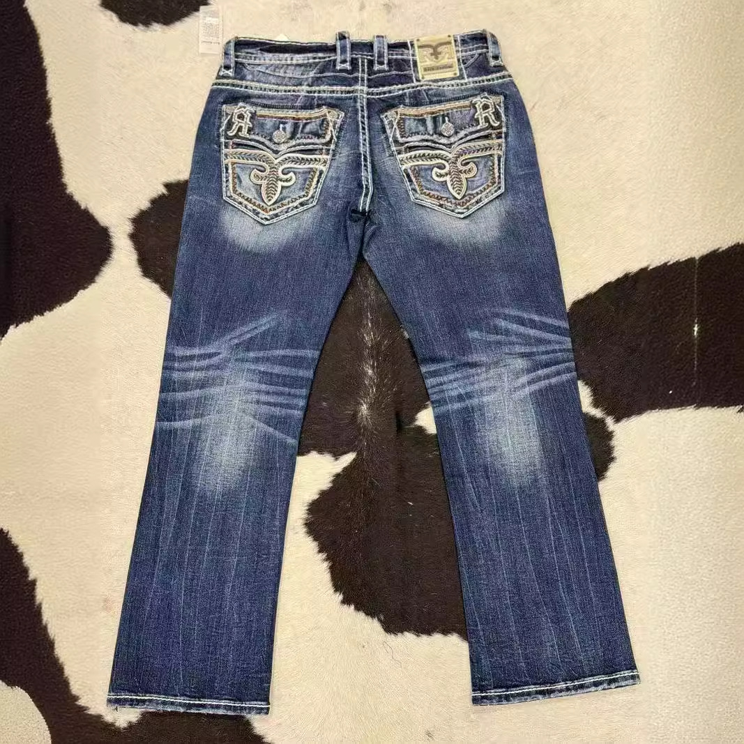 2024夏季新款跨境美式复古水洗爆款高弹南美风绣花喇叭女式牛仔裤