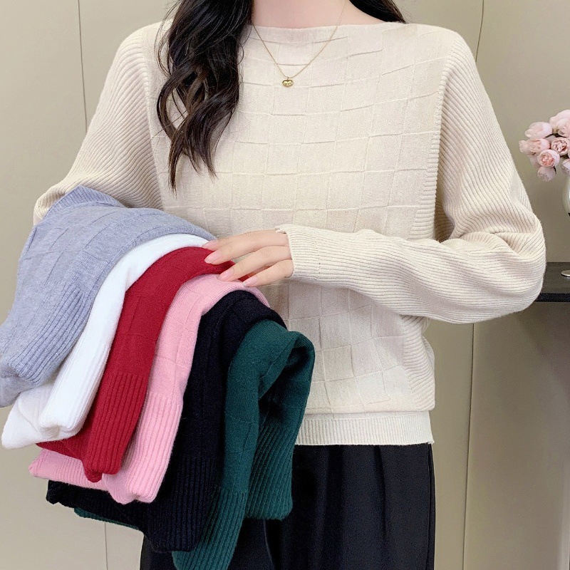 蝙蝠袖上衣长袖宽松外穿春装2024大码红色毛衣针织打底短袖3D图案