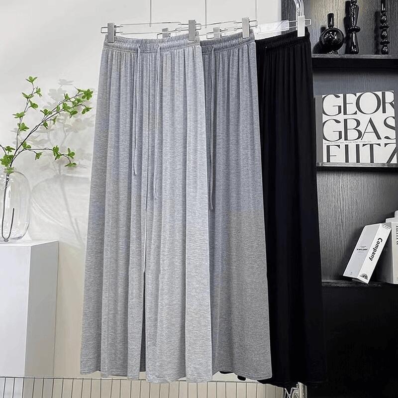 Celana Lebar Kaki Modal Abu-abu Celana Olahraga Ukuran Besar Model Tipis Musim Panas Wanita Celana Pelindung Terik Matahari Kasual Sutra Es Lurus Pinggang Tinggi