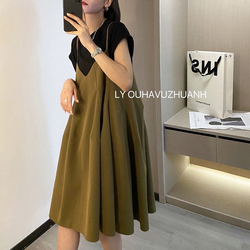 Gaun Wanita Terlihat Langsing Longgar Gaya Seni Sederhana Rok Panjang Sedang Ukuran Besar Wanita Ukuran 200Kg Musim Panas 2025 Model Baru