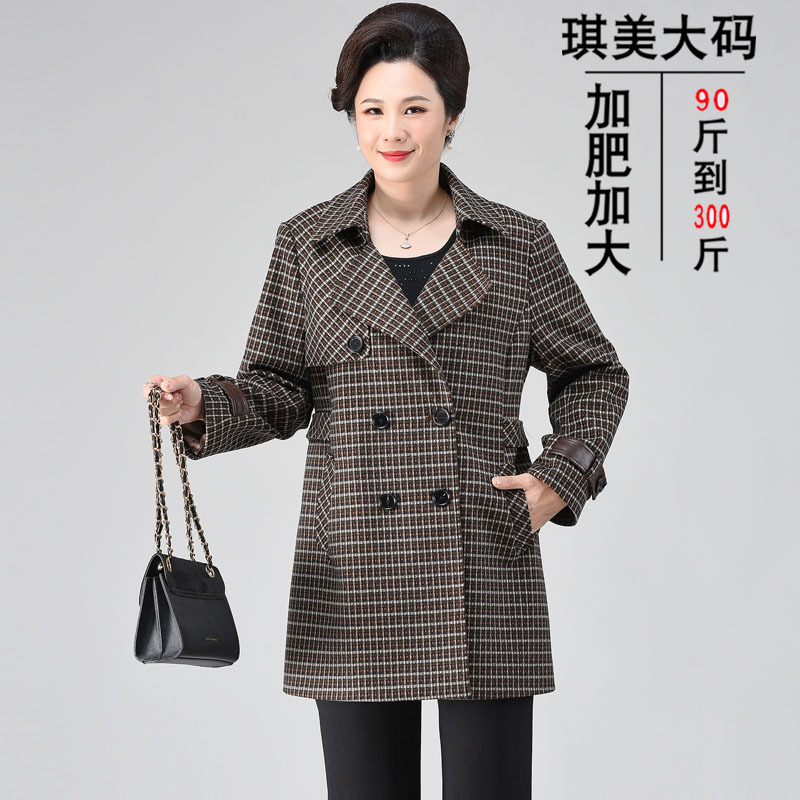 Musim semi dan musim gugur mantel kotak-kotak ibu wanita usia sedang mantel panjang menengah atasan ibu mertua baru 200kg