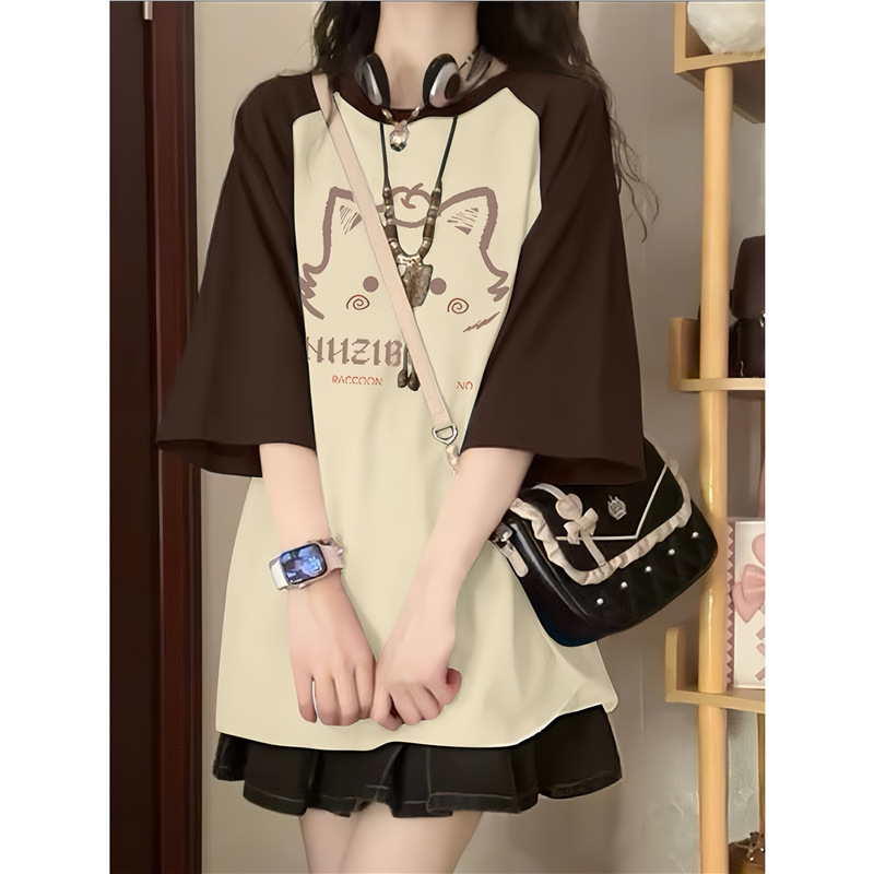 T-Shirt Lengan Pendek Katun Tulen Retro Gaya Amerika Pakaian Musim Panas Wanita 2025 Atasan Lengan Setengah Terlihat Langsing Longgar Siswa Sekolah Menengah