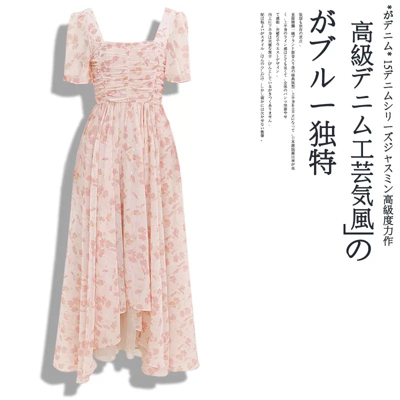 Fat mm2024 gaun pelangsing persegi wanita, pakaian liburan peri retro Prancis ukuran besar musim panas