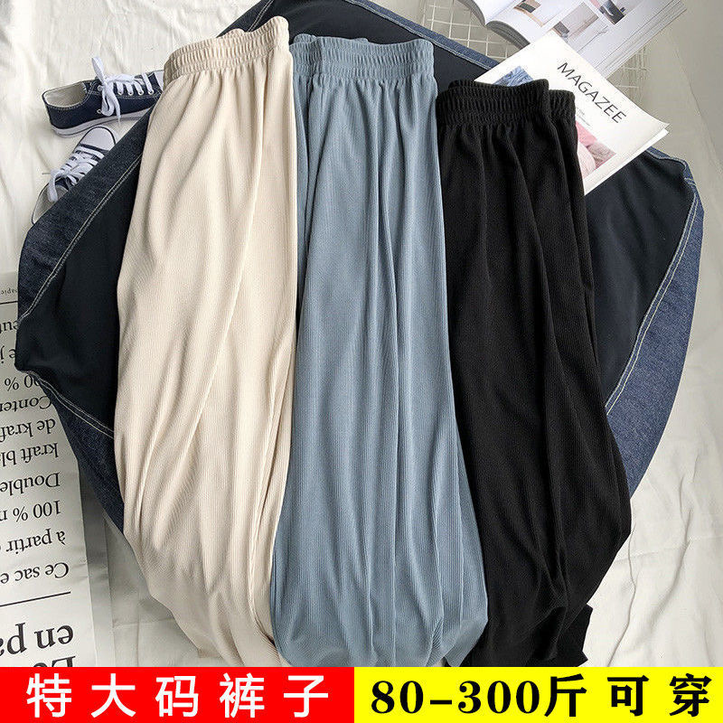 Pakaian Wanita Ukuran Besar Celana Kaki Lebar Lurus Sutra Es Ukuran 2-300Kg Celana Panjang Murid Terlihat Kurus Mudah Dipadu Padan Longgar