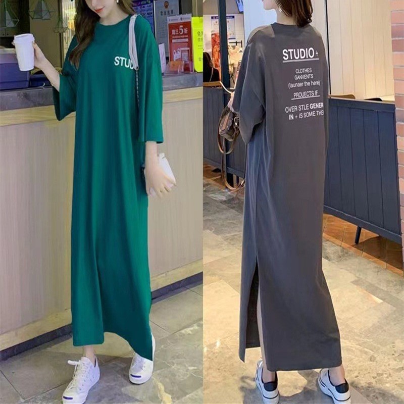 Pakaian Musim Panas Gadis Gemuk Rok T-shirt Lengan Pendek Model Panjang Orang Malas Model Baru Gaun Ukuran Besar Di Bawah Lutut Longgar Rok Panjang 200Kg