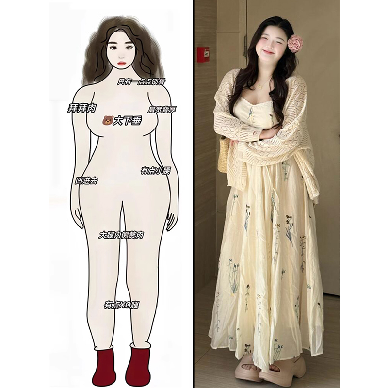 Set Kardigan Rajutan Berongga Perjalanan Yunnan Ukuran Besar Wanita Berlemak Set Gaun Bertali Mengangkat Usia Set