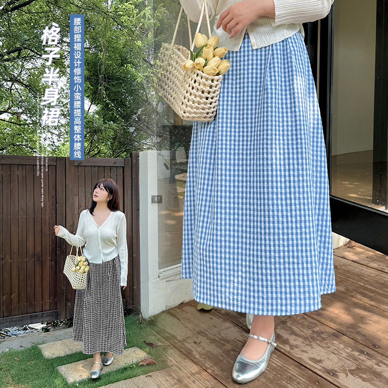 Yinuo Rok Setengah Badan Retro Ukuran Besar Wanita Rok Panjang Sedang A-Line Pinggang Tinggi Menutupi Pinggang Tinggi Model Baru Musim Panas 2025 252432