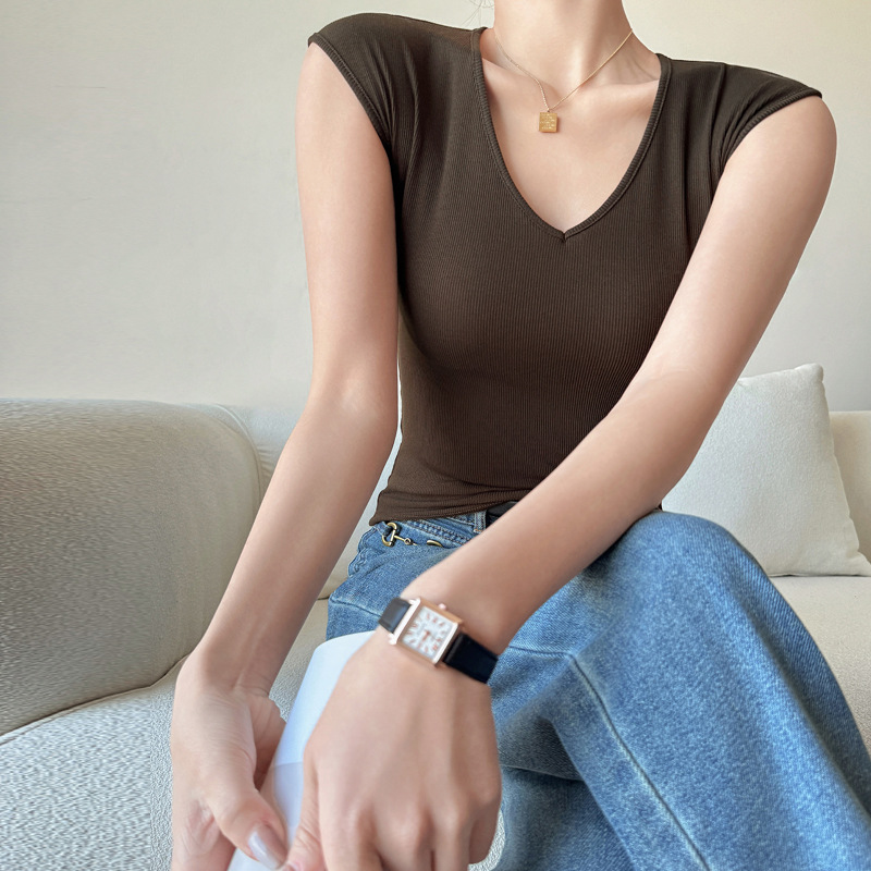 Benang rajutan V-neck tanpa lengan kemeja Dalaman wanita setelan bahu dalam T-shirt ukuran besar pakaian luar baju atasan pas badan