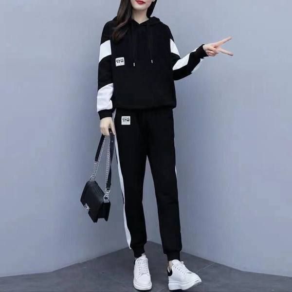 Pakaian wanita ukuran besar longgar, pakaian wanita gemuk, pakaian anak perempuan kasual sederhana, penutup daging pelangsing olahraga dua potong musim gugur dan musim dingin 2022