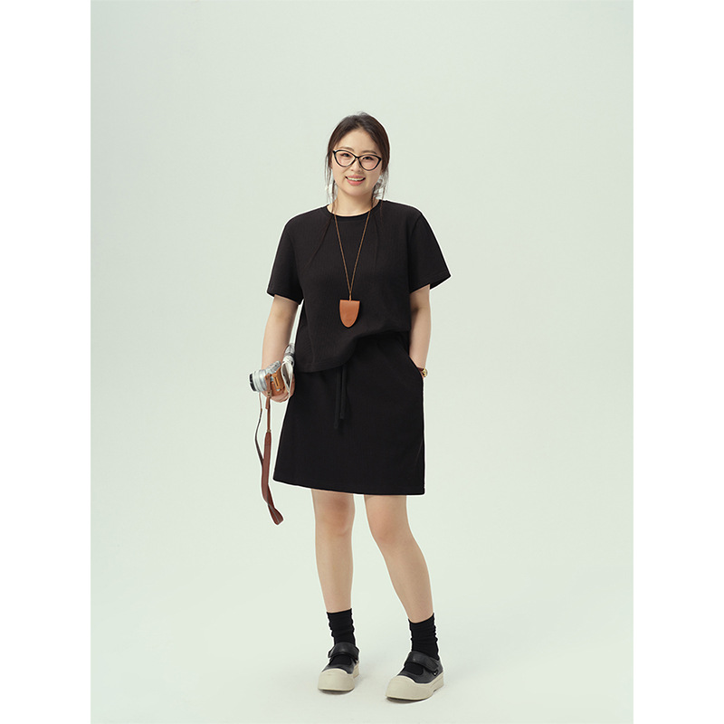 Pakaian Wanita Ukuran Besar Setelan Waffle Kasual Wanita Kering Kering Penyerap Keringat Luar Ruangan Nyaman Rok Semi Olahraga Warna Solid Leher Bulat