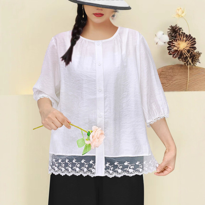 Kaus Lengan Pendek Bahu Wanita Musim Panas Kaus Lengan Setengah Panjang Warna Putih Wanita Gemuk Ukuran Besar Longgar Model Baru Atasan Musim Panas Trendi Instagram