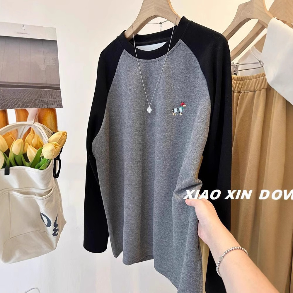Kaos Dalaman Anak Anjing Bordir Mengurangi Usia Gaya Amerika Ukuran Super Besar 240Kg Atasan Longgar Wanita Musim Semi Musim Gugur