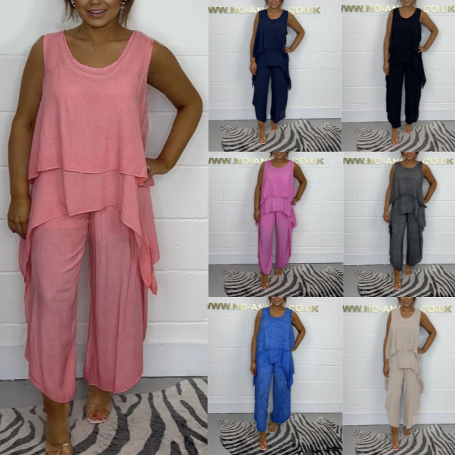 Set Tiga Potong 2024 Produk Meledak Lintas Batas Stasiun Independen Amazon Setelan Wanita Ukuran Besar Tanpa Lengan Longgar Kasual Modis