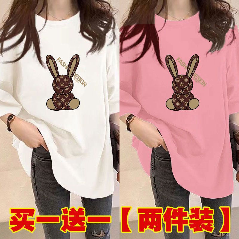 Pakaian Wanita Ukuran Besar 300Kg Atasan Lengan Pendek Menutupi Perut Instagram Model Baru Longgar Terlihat Langsing Model Panjang Sedang Gaya Korea Wanita Musim Panas