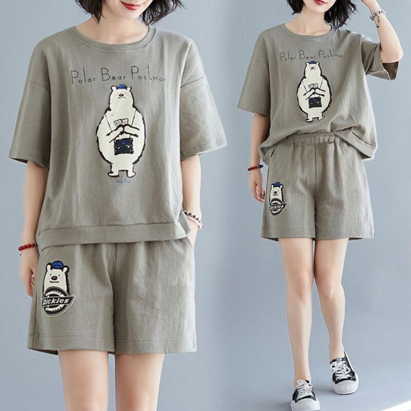 Setelan Gaya Barat Lari Santai Olahraga Longgar Model Baru Musim Panas Produk Eropa Celana Pendek Lengan Pendek Wanita Mengurangi Usia Modis Setelan Dua Potong