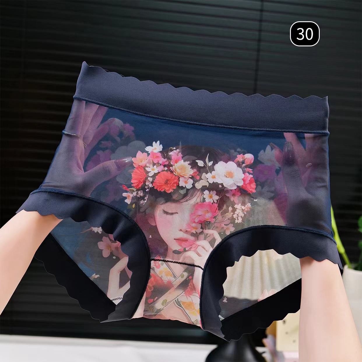 Pakaian dalam renda segitiga seksi gadis, pakaian dalam renda segitiga ukuran besar gemuk transparan jaring ringan tanpa kelim musim panas untuk anak perempuan