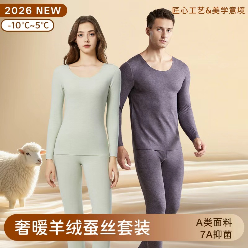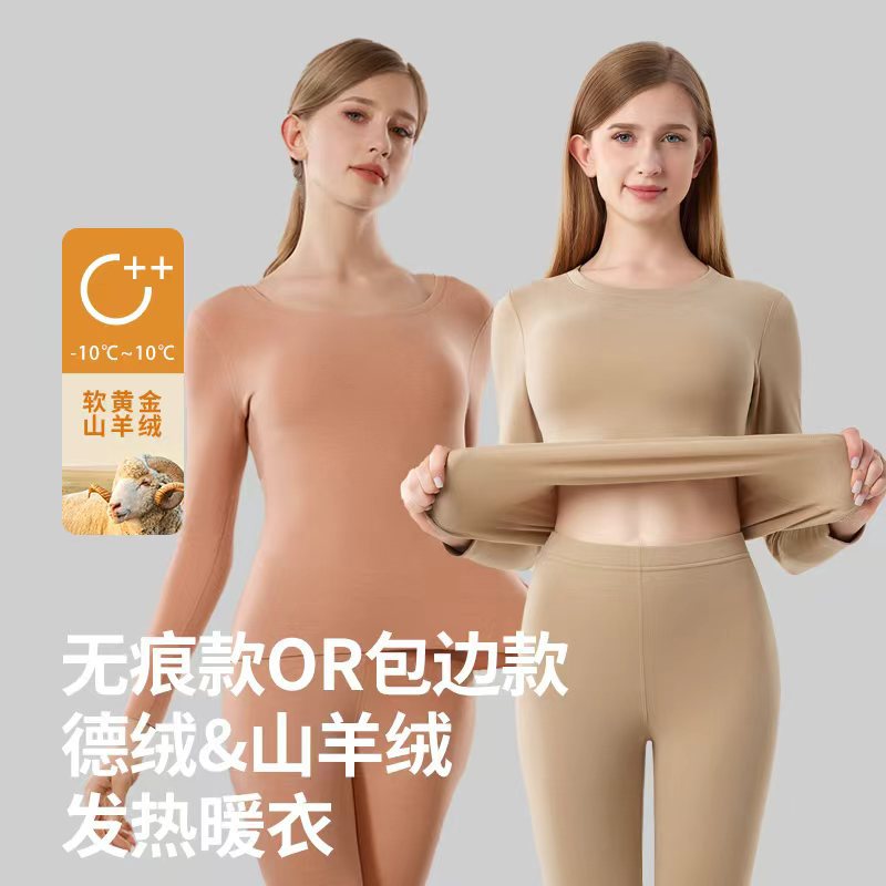 新款德绒女士保暖内衣套装A类冬季加绒发热山羊绒抗菌秋衣秋裤