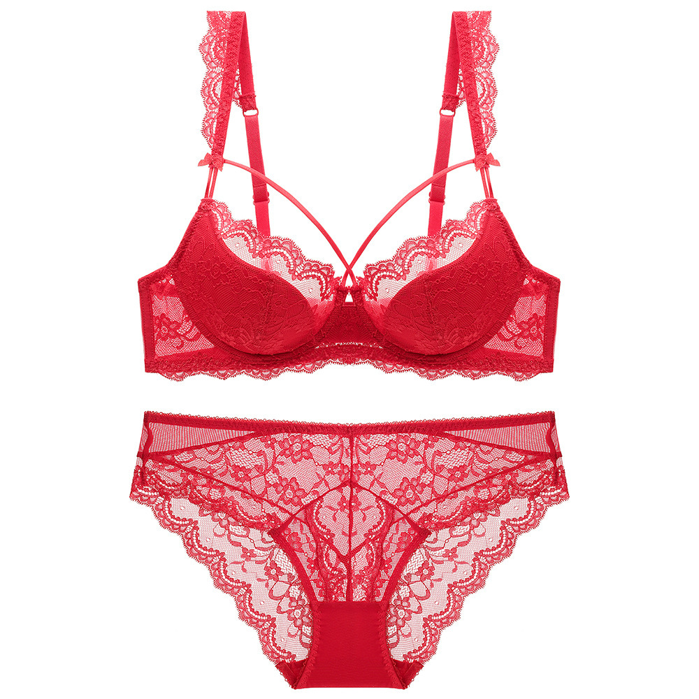 Pakaian dalam renda seksi Eropa dan Amerika baru setelan wanita push up ukuran plus bra push up nyaman kecil dada besar katun tipis