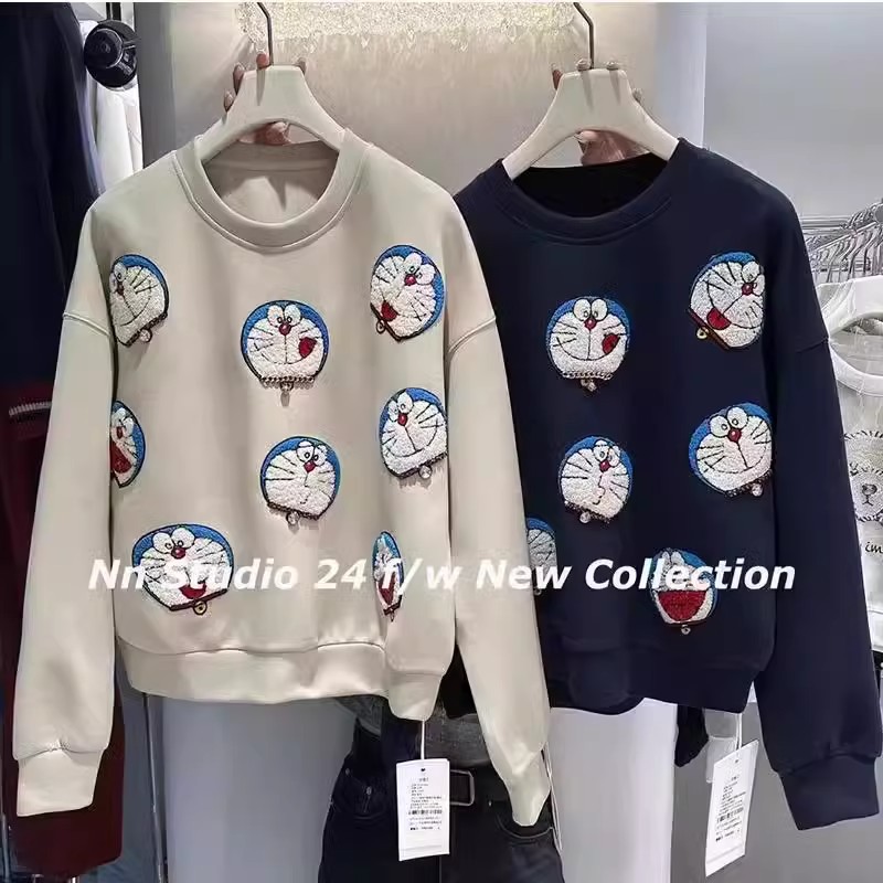 2-300斤胖m特大码重工绣花叮当猫秋冬薄款卫衣女洋气百搭秋季外套