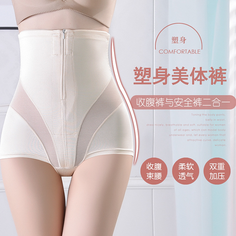 拉链收腹塑身裤产后高腰收胃提臀裤女薄款瘦身束腰美体塑身裤大码