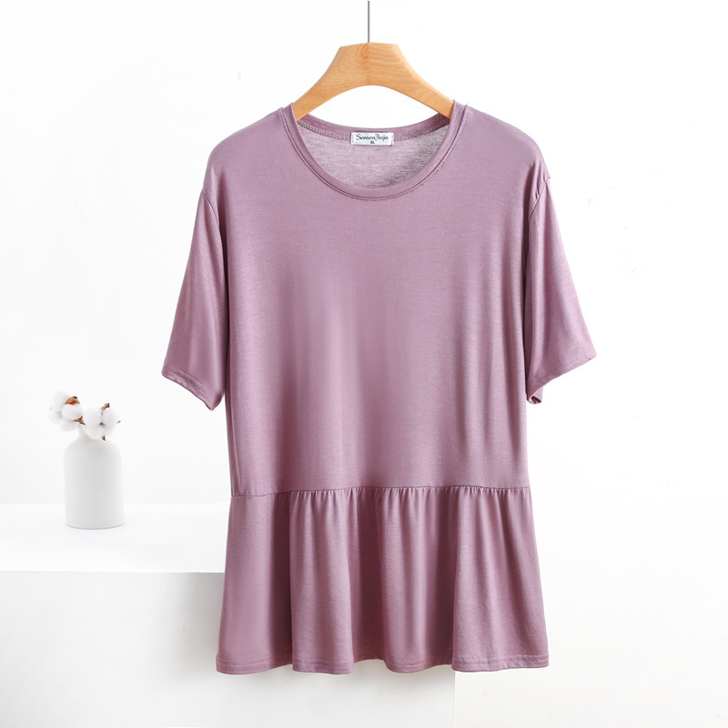 Kaus lengan pendek gaya Korea wanita, kaos atasan lipit ukuran besar, pakaian luar modis Semua cocok musim panas