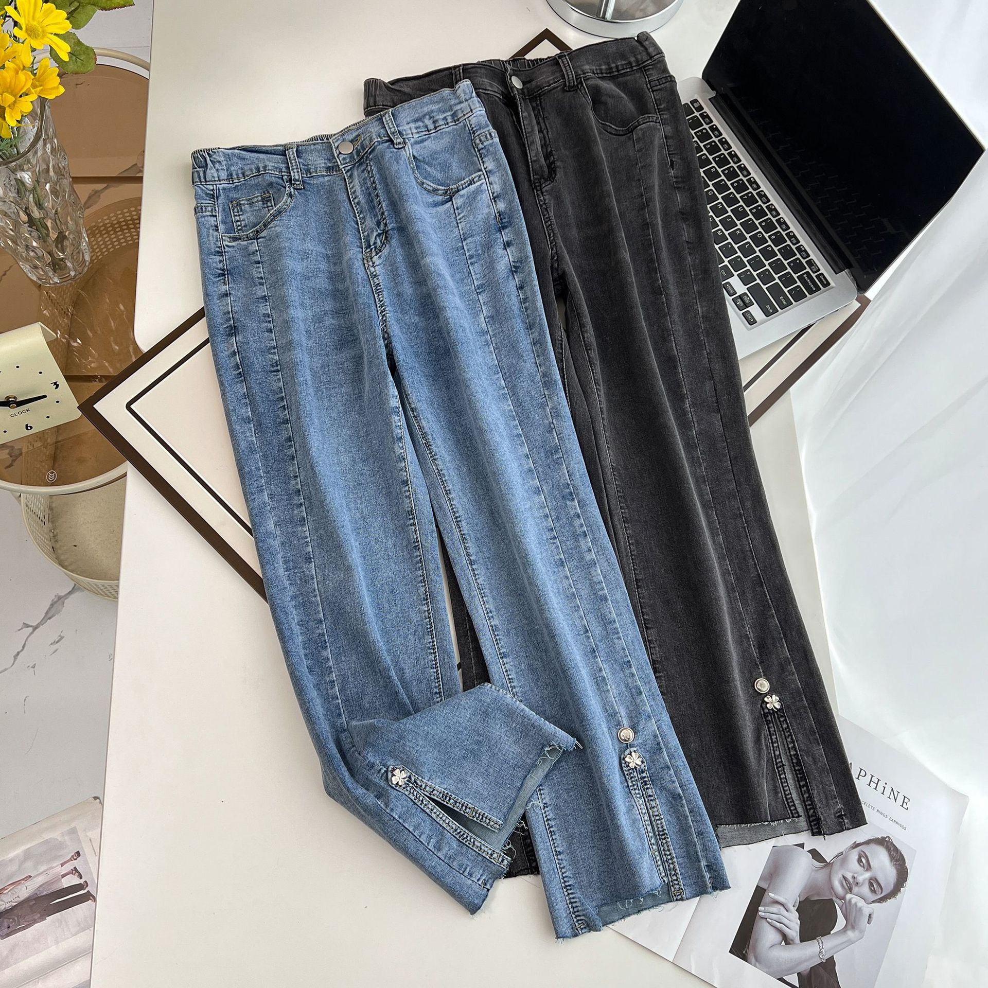 Celana ketat anak perempuan, celana potong Denim ketat, celana pipa lurus ukuran besar, celana crop Denim terpisah, pelangsing, musim panas, untuk wanita, 5341