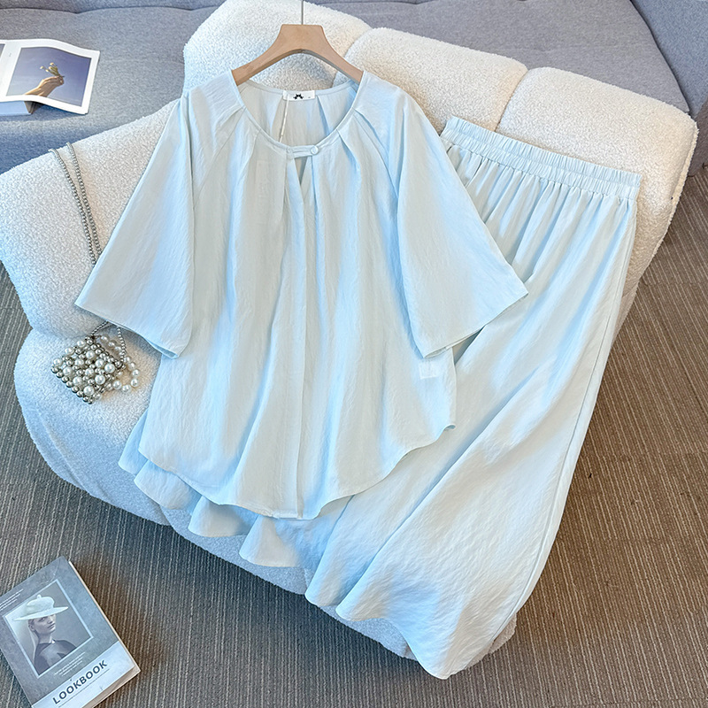 Pakaian Wanita Ukuran Besar 130-350Kg Atasan Lengan Pendek Gaya Korea Model Baru Musim Panas Wanita Gemuk Rok Setengah Badan Pinggang Tinggi Setelan Dua Potong