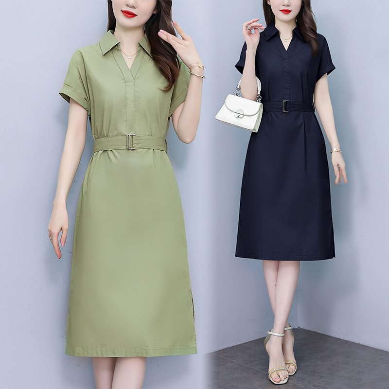 Gaun Wanita Musim Panas 2025 Model Baru Pinggang Terlihat Langsing Pinggang Sederhana Bertali Model Panjang Sedang Rok