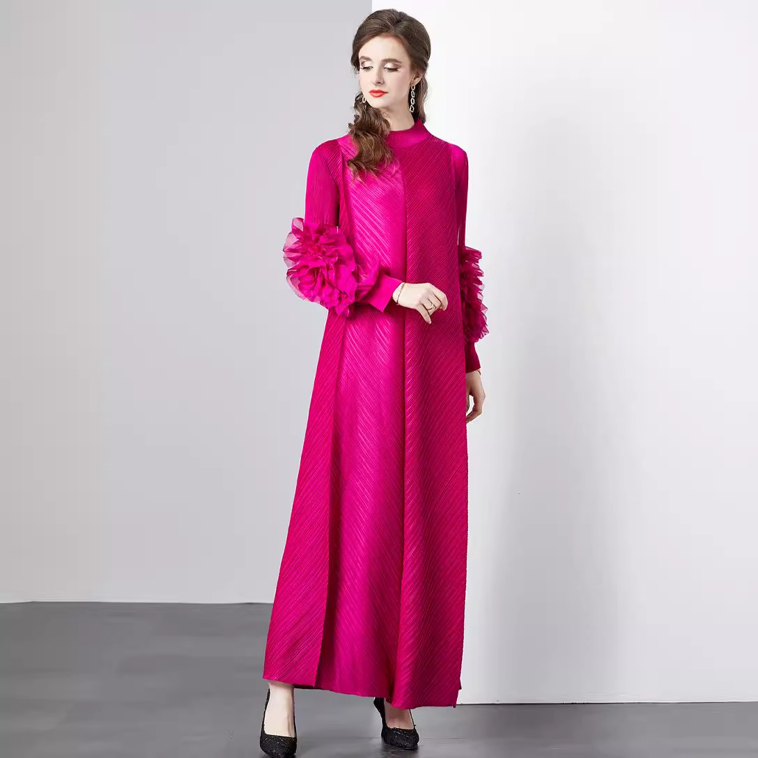 Miyake Lipit 2025 Model Baru Musim Semi Modis Rok Lipit Lengan Kerah Lentera Gaun Sihir Terlihat Langsing Membentuk Pinggang
