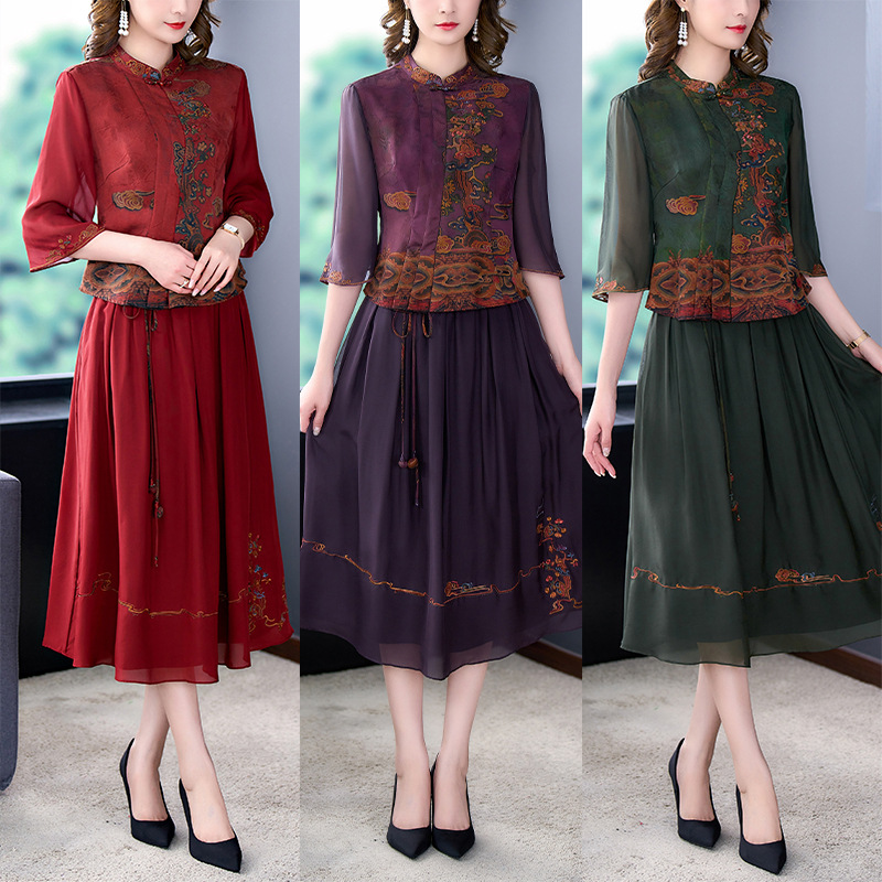 Xiangyun baju benang gaun sutra dua potong, baju pernikahan ibu lampu sutra mewah happy mother-in-law