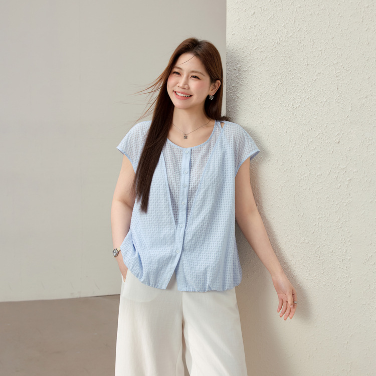 [Catatan Su Shiyun] Kemeja Tipis Bernapas Kain Jaring Gaya Musim Panas Cinta Pakaian Wanita Ukuran Besar Xialixiu Pakaian Musim Panas Wanita Gemuk Model Baru