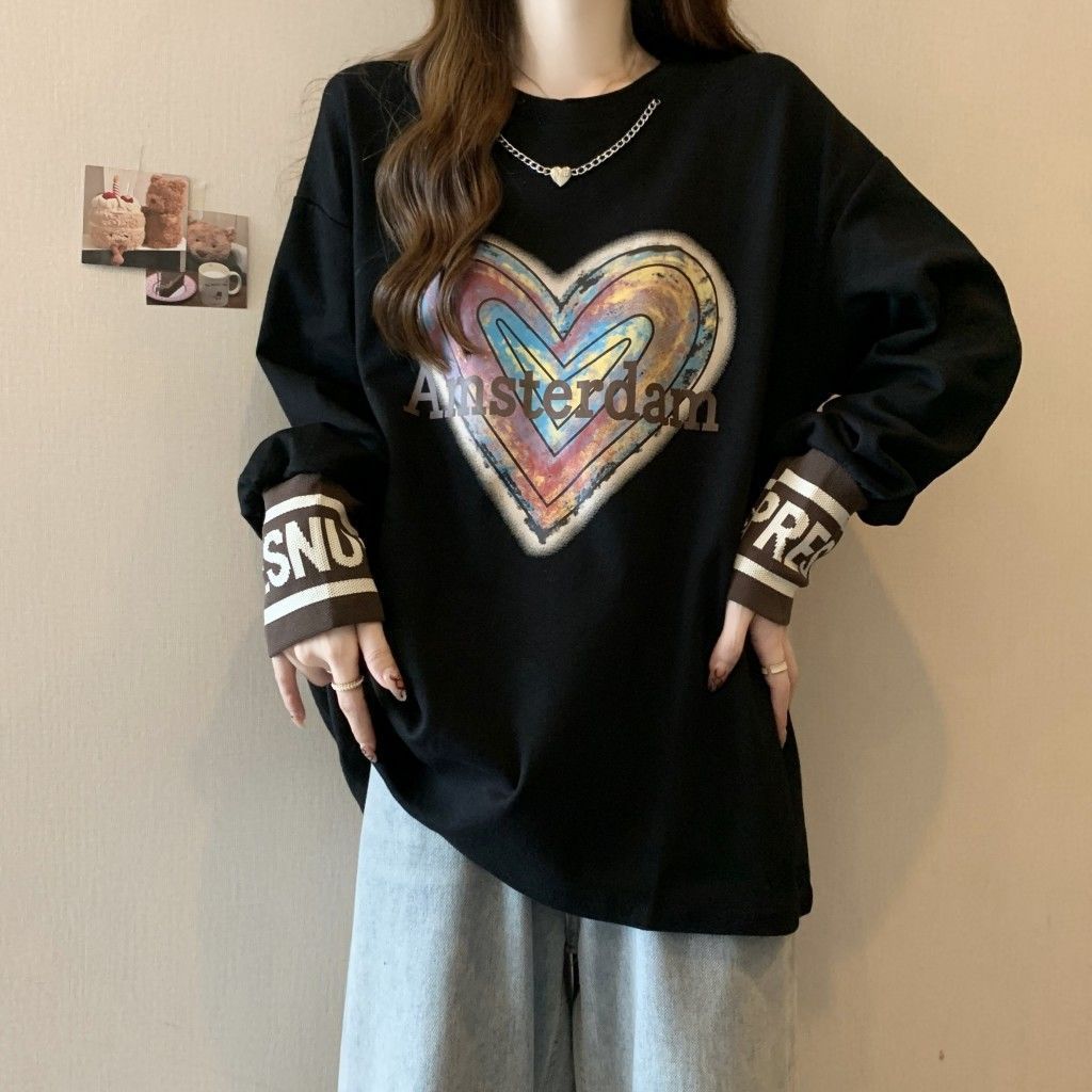 Kaus lengan panjang warna polos ukuran ekstra besar musim gugur wanita kemeja Dalaman terbelah longgar musim gugur dan musim dingin Korea Selatan wanita