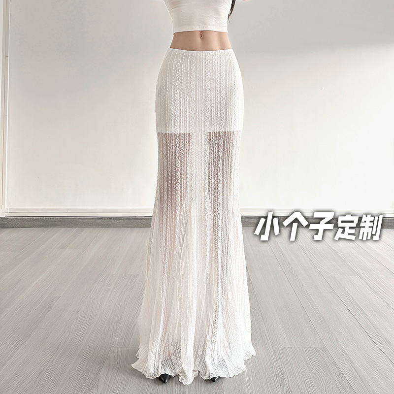 Rok Setengah Badan Wanita Renda Jacquard Berukuran Pendek dan Terlihat Terlihat 150 Rok Ekor Ikan Murni Musim Panas Slim Fit Model Panjang Sedang