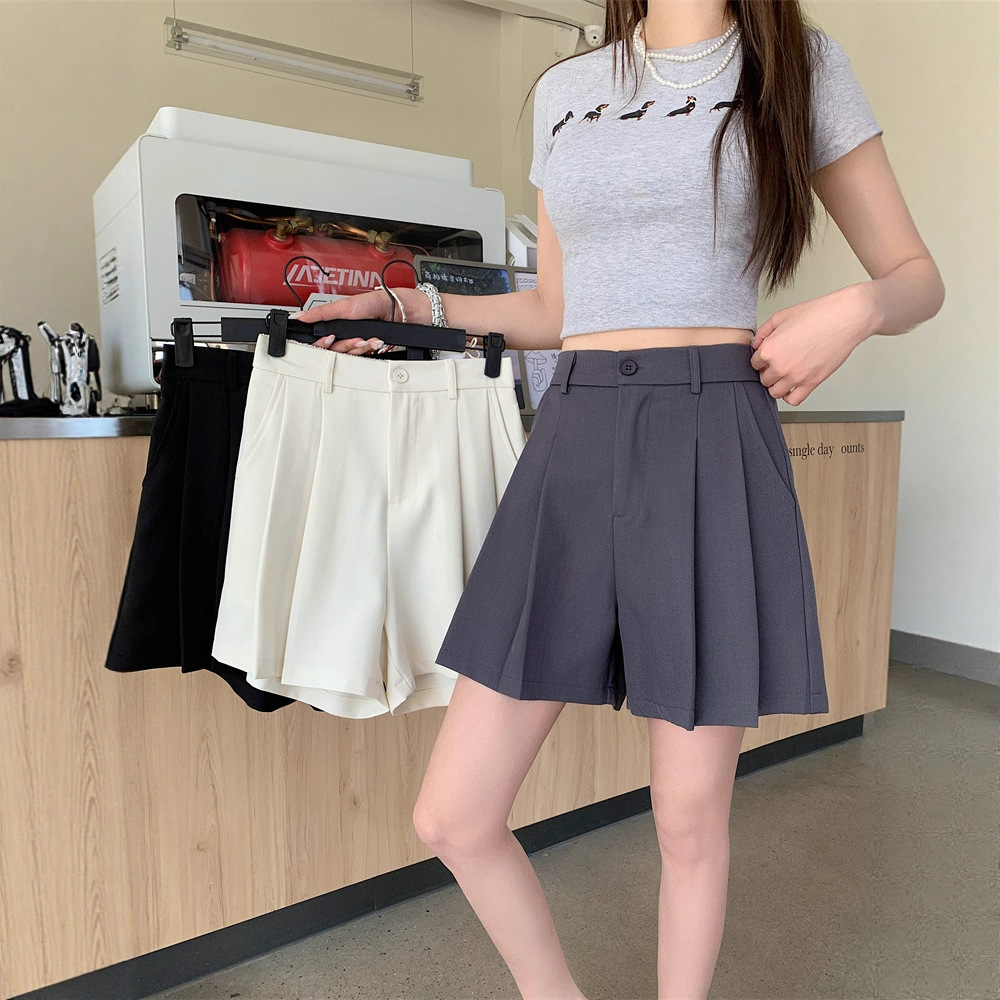Pakaian Wanita Ukuran Besar Celana Pendek Jas Berlipit A-line Lipit Pinggang Tinggi Terlihat Langsing Lipit Wanita Ukuran Besar Wanita Gemuk