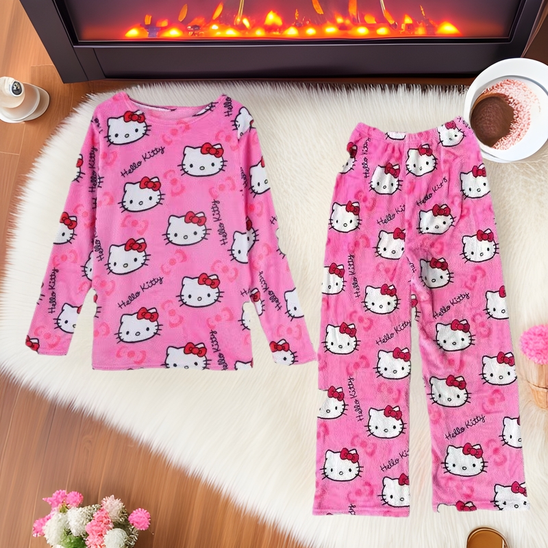 Celana Tidur Wanita Flanel Set Dua Potong Model Baru Musim Gugur dan Musim Dingin Celana Set Rumah Kasual Tetap Hangat Beludru Flanel