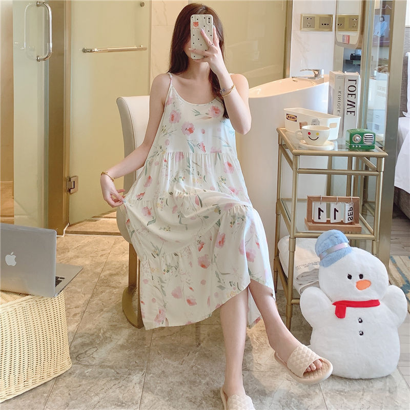 Gaun malam baru musim panas piyama katun sutra wanita seksi ukuran besar piyama katun buatan tipis bisa dipakai di luar pakaian rumah wanita