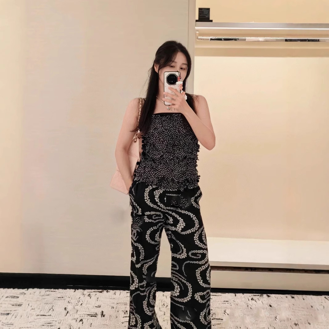Celana panjang wanita model wide-leg, pinggang elastis, bordir jacquard, diskon besar, tidak bisa dikembalikan, serbaguna 13919