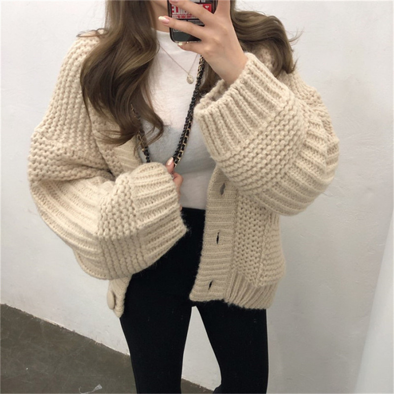 2023 jarum tebal lengan lentera longgar gaya malas Semua cocok Jepang lembut gaya mantel longgar garam madu mantel lucu