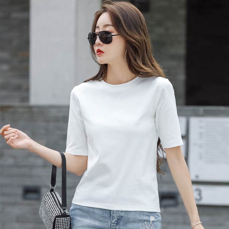 Kaus Wanita Lengan setengah, kaos Dalaman gaya Korea warna solid, baju wanita kasual grosir 2022