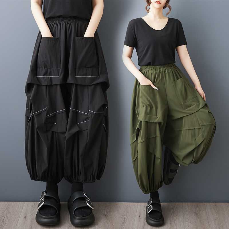Pakaian Musim Panas Foto Solid Celana Lebar Kaki Mudah Dipadu Padan Tidak Beraturan Longgar Terlihat Kurus Celana Lipit Garis Kepribadian Gaya Yamamoto Model Baru