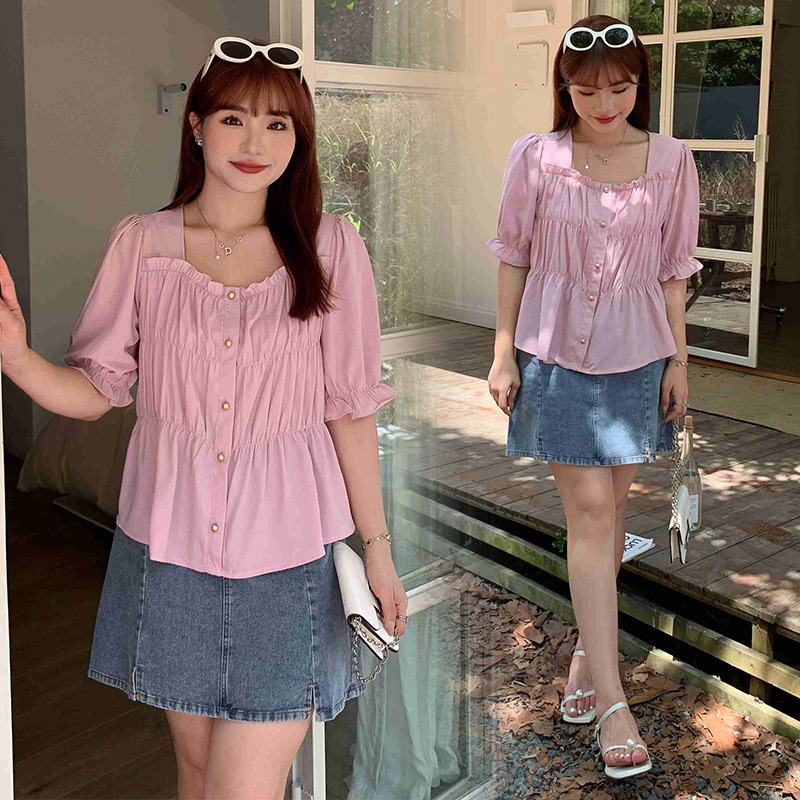 Chubby Girl Fried street top belly cover pakaian musim panas bahu pendek ukuran plus pakaian wanita fashion desain pelangsing kemeja trendi 3252