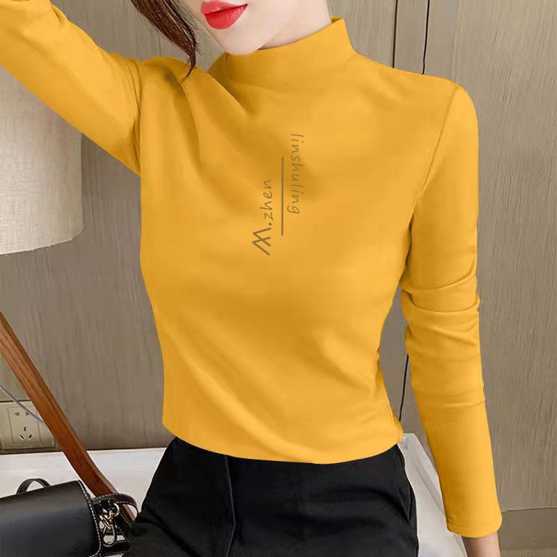 Kemeja bottoming ukuran Plus wanita, baru musim gugur dan musim dingin wanita setengah turtleneck longgar pelangsing gadis perut menutupi gaya Barat sweater 3330