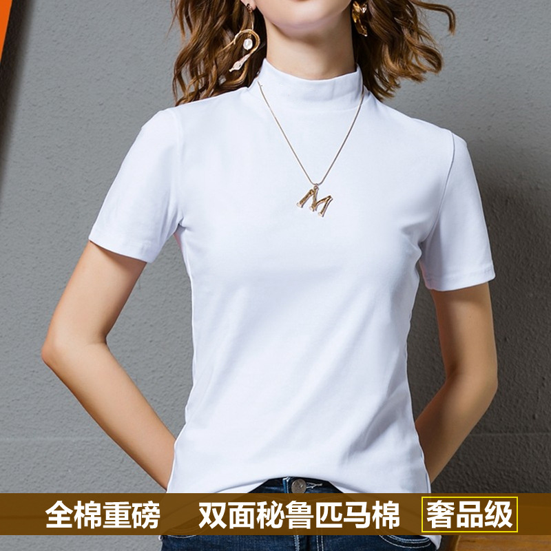 Kaus lengan pendek kerah semi-tinggi katun horse Peru kaus Dalaman katun Musim semi dan musim panas wanita