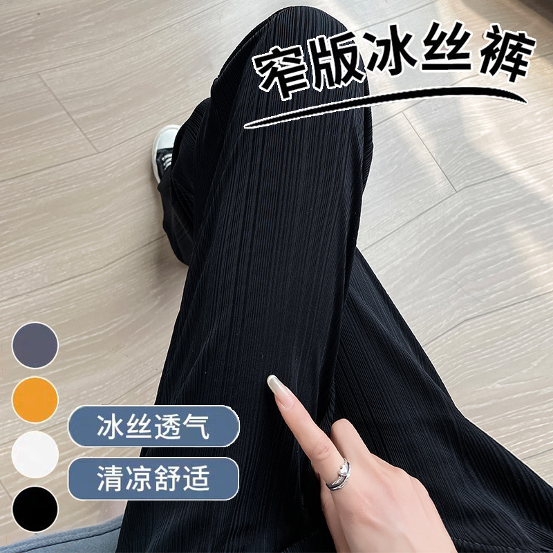 300Kg Celana Kaki Lebar Ukuran Besar Plus-Besar Celana Sutra Es Lurus Kasual Wanita Gemuk Longgar 200 Model Tipis Musim Panas