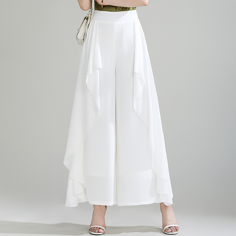 Celana Kaki Lebar Sifon Celana Ibu Modis Longgar Tidak Beraturan Model Baru 2025 Model Tipis Musim Panas Wanita Celana Rok Longgar Celana Longgar