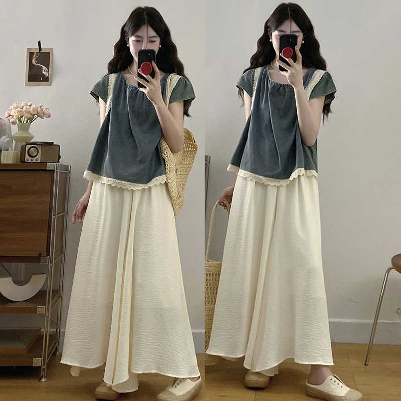 Rok Setengah Badan Gaya Desain Saku Ganda Model Populer Osaka Rok A-Line Lebar Ukuran Besar Longgar Model Baru Musim Panas 2024 Wanita Instagram