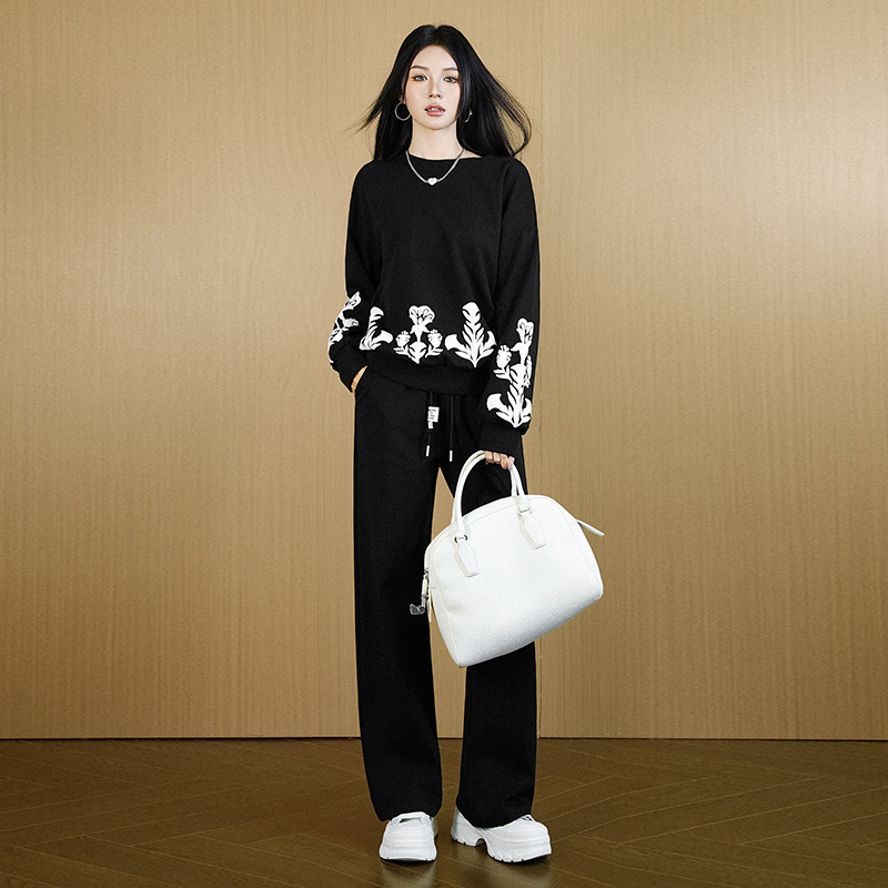 秋冬黑色运动休闲套装女2025新款宽松时尚卫衣卫裤显瘦两件套