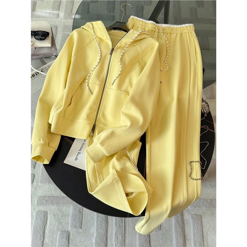 时尚休闲运动套装女2025春季新款连帽开衫外套阔腿裤显瘦两件套潮